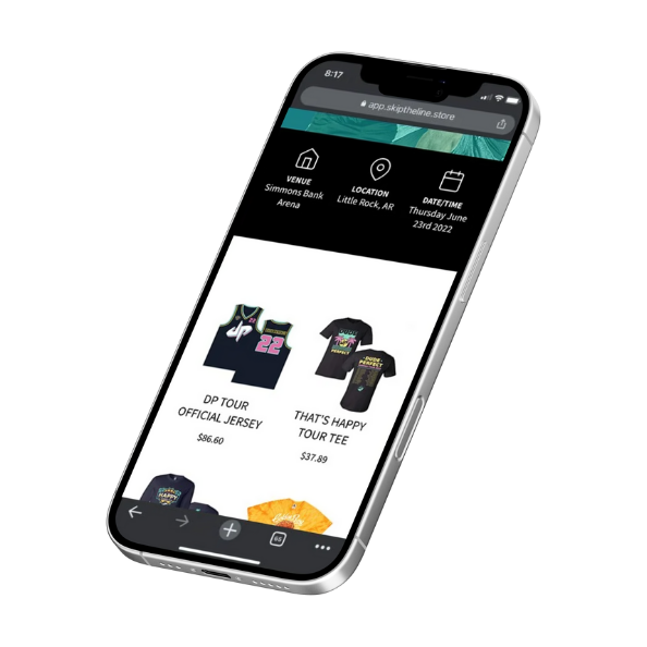 Skip The Line lets fans buy merch from their seats— so fans stay in the show and still get the gear they want. Fans scan a QR code, shop their specific event with live inventory, and get a text when it’s ready. Your team fulfills from one simple dashboard with clean end-of-night reporting.